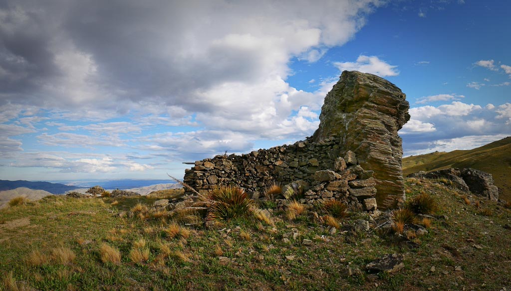 - [ ] These meager rock walls, now no taller than one’s waist, stand as the remnants of a humble miner’s refuge in the heart of Bannockburn. Their stark simplicity tells a poignant tale of the relentless pursuit of gold that once consumed this region. Behind them, the formidable vertical cliff, shaped by the ceaseless sluicing for precious metal, looms as a testament to the determination and bravery of those early miners. This barren landscape, devoid of sheltering trees, to me still epitomises the flavour of the day as the ruins, standing silent amidst the golden history, serve as poignant relics of a bygone era fraught with the ceaseless search for riches, ultimately limited by limited sources of water.
